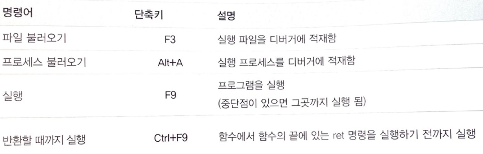 - 프로그램 재 시작의 경우 실행 결과와 메모리를 수정한 내용은 사라지지만 중단점, 주석, 레이블 등의 정보는 사라지지 않는다.