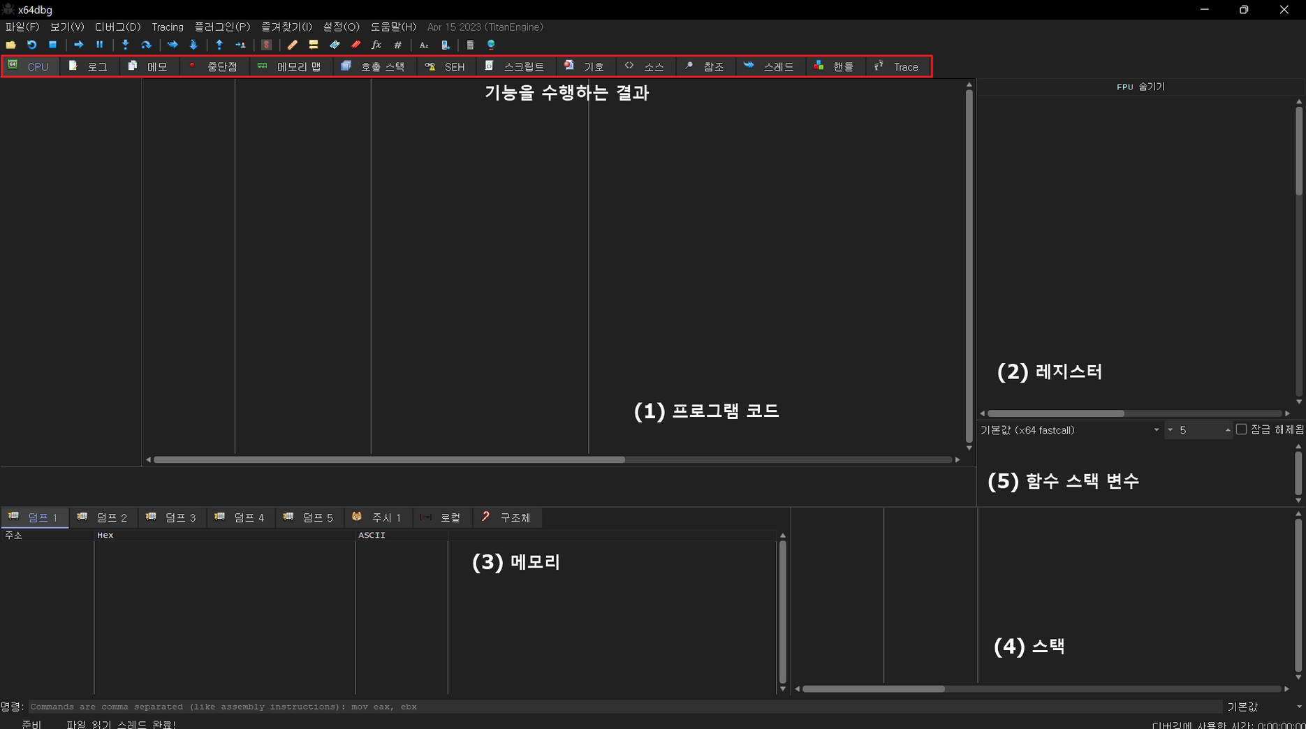 | (4) | 스택 | 함수에서 사용하는 스택을 보여줌. 지정 확인 가능 |